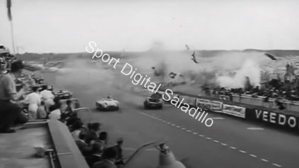 En las pocas imágenes que existen del accidente, se aprecia que el Mercedes de Levegh pareció explotar en el aire, el cospit –donde se ubica el piloto- cayó sobre la pista y el francés murió por el impacto, no por quemaduras. El motor y varias piezas del chasis salieron disparados hacia el público dejando a su paso un reguero de sangre y muerte. “La gente iba cayendo como fichas de dominó”, relataba otro periodista.