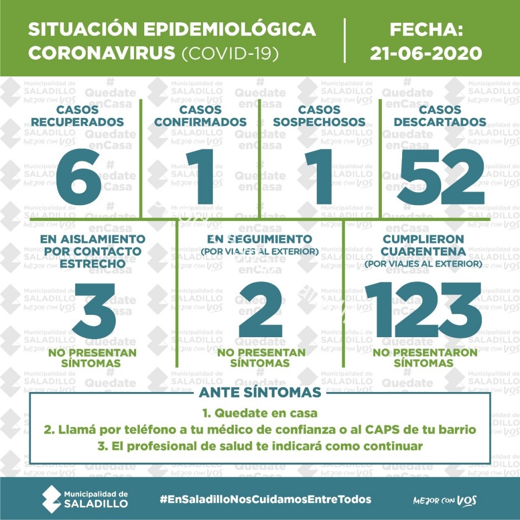 SITUACIÓN EPIDEMIOLÓGICA EN SALADILLO | 21/6/2020