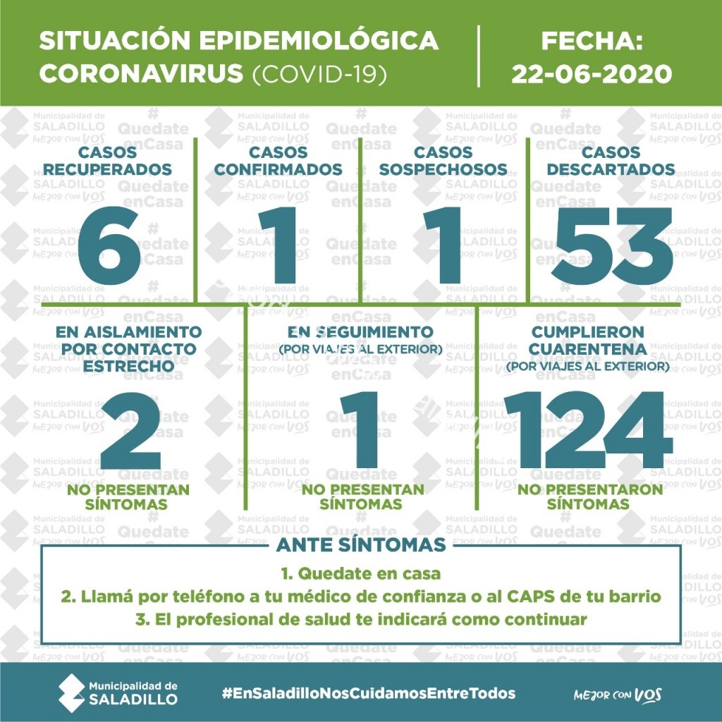 SITUACIÓN EPIDEMIOLÓGICA EN SALADILLO | 22/6/2020