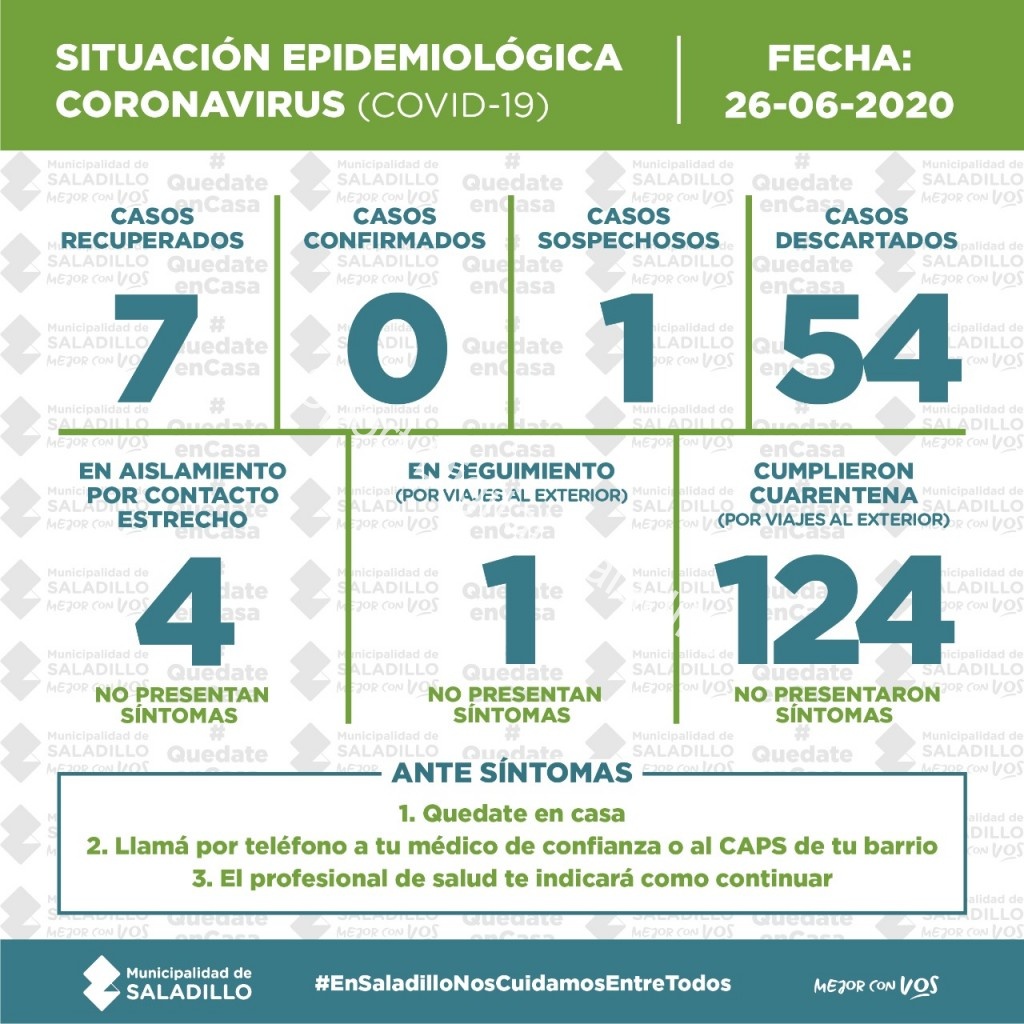 SITUACIÓN EPIDEMIOLÓGICA EN SALADILLO | 26/6/2020