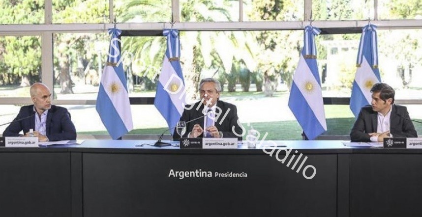 Acompañado por el gobernador bonaerense, Axel Kicillof, y el jefe de Gobierno porteño, Horacio Rodríguez Larreta, el jefe de Estado resaltó que todas las medidas se toman "en consenso y coordinación" con la Ciudad y la provincia de Buenos Aires.