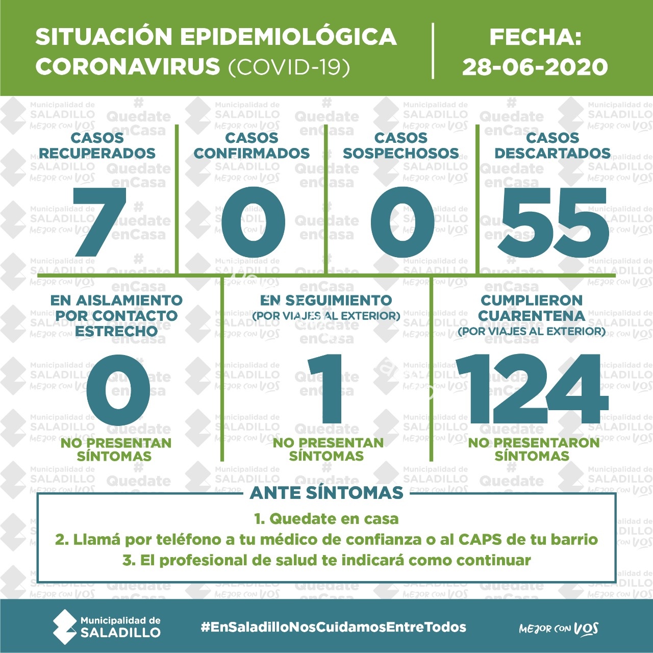 PARTE DIARIO POR CORONAVIRUS al 28/06 para Saladillo, Argentina, Mundo