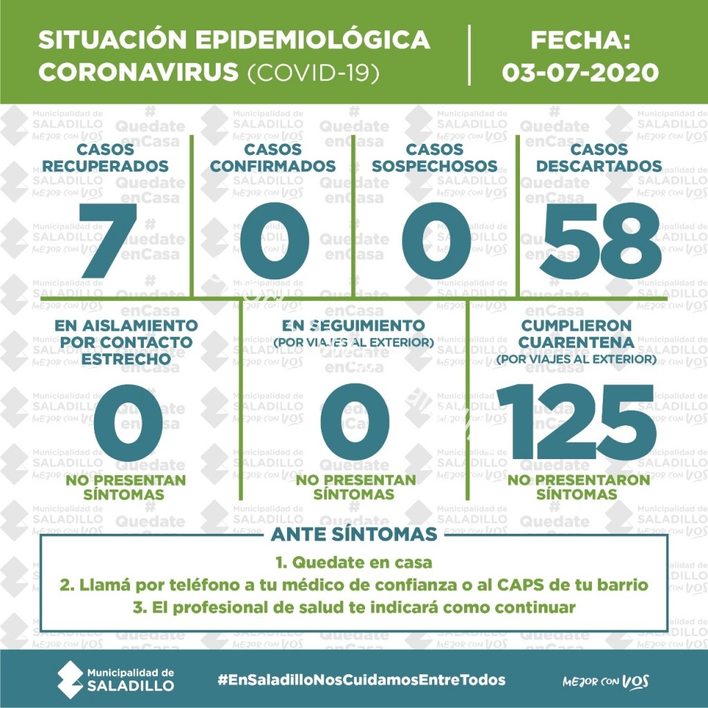 SITUACIÓN EPIDEMIOLÓGICA EN SALADILLO | 03/7/2020
