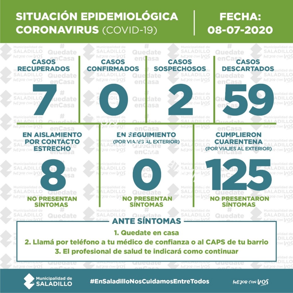 SITUACIÓN EPIDEMIOLÓGICA EN SALADILLO | 08/7/2020