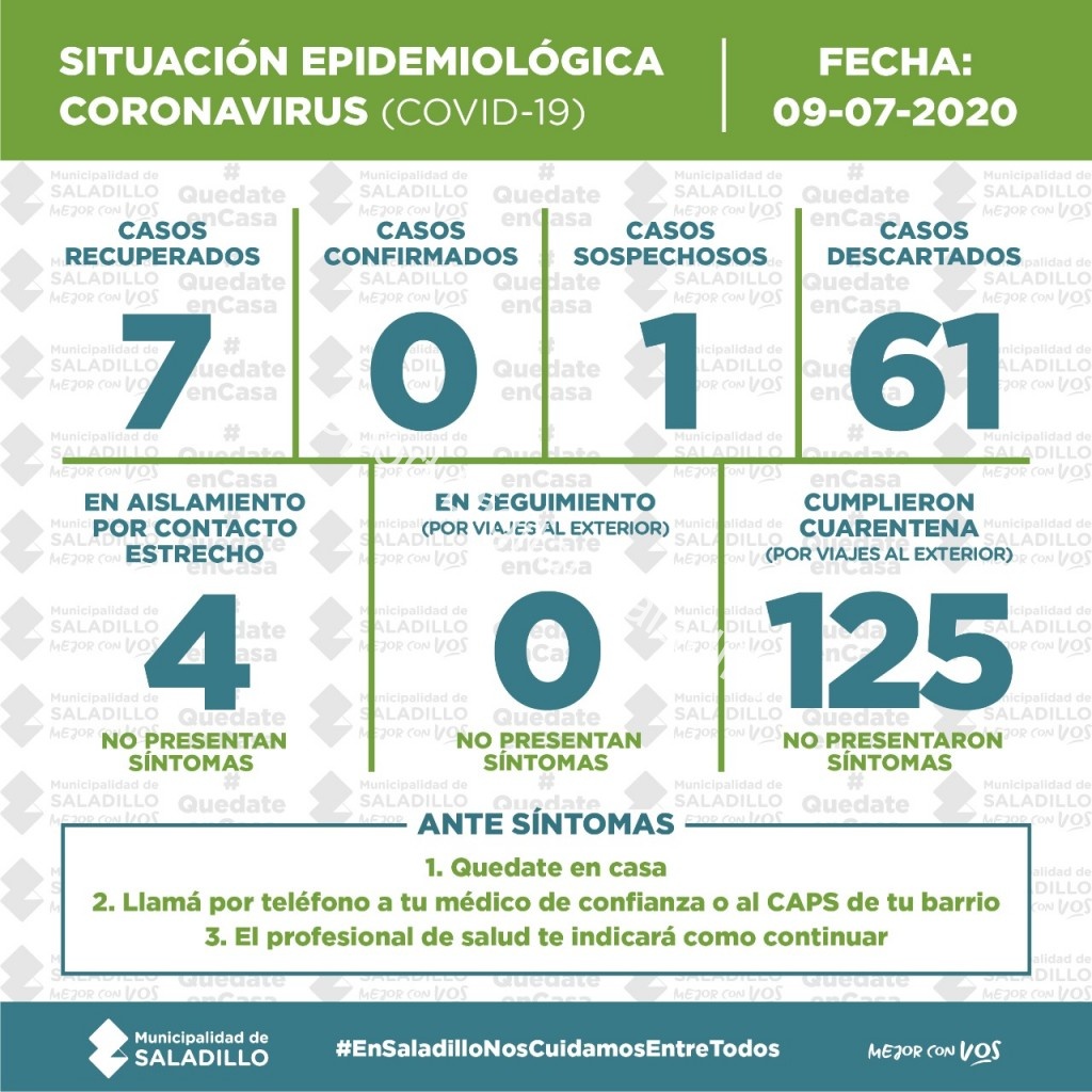 SITUACIÓN EPIDEMIOLÓGICA EN SALADILLO | 09/7/2020