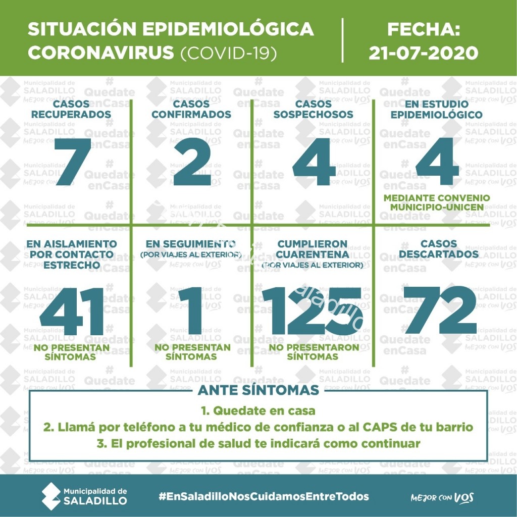 SITUACIÓN EPIDEMIOLÓGICA EN SALADILLO | 21/7/2020