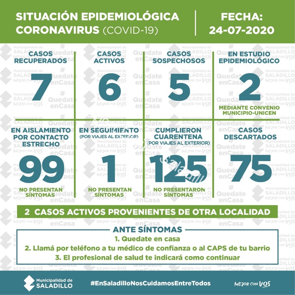 SITUACIÓN EPIDEMIOLÓGICA EN SALADILLO | 24/7/2020