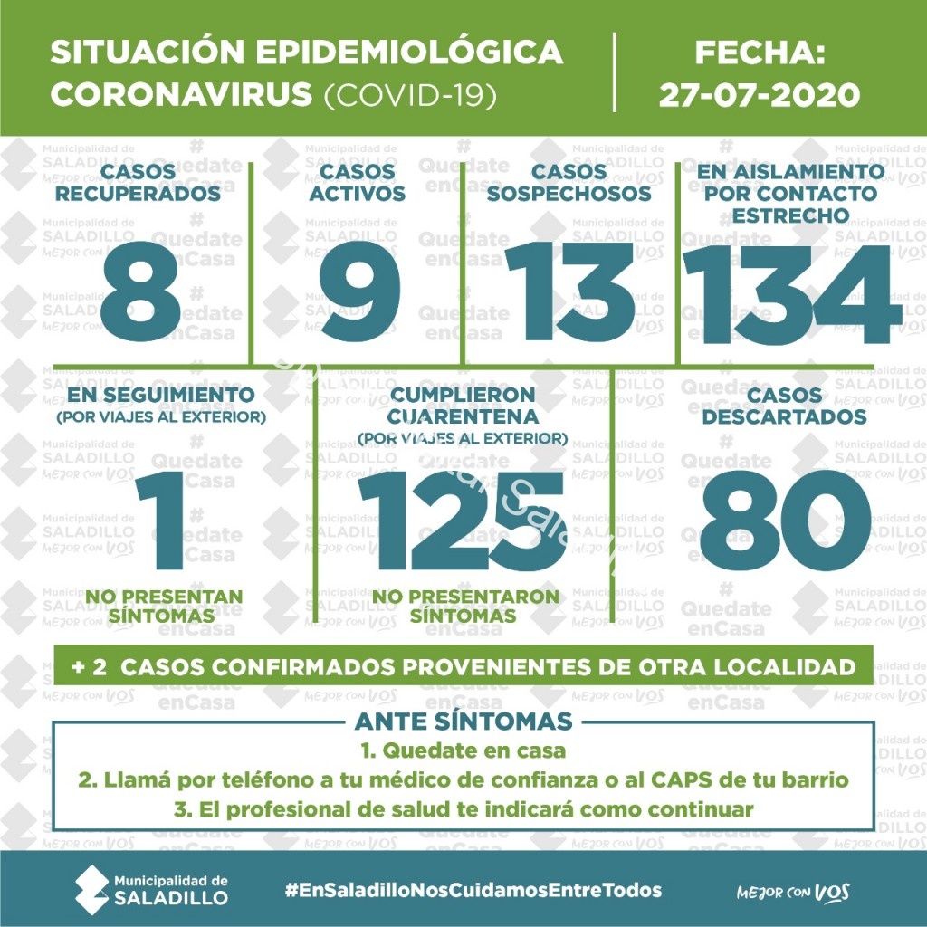 SITUACIÓN EPIDEMIOLÓGICA EN SALADILLO | 27/7/2020