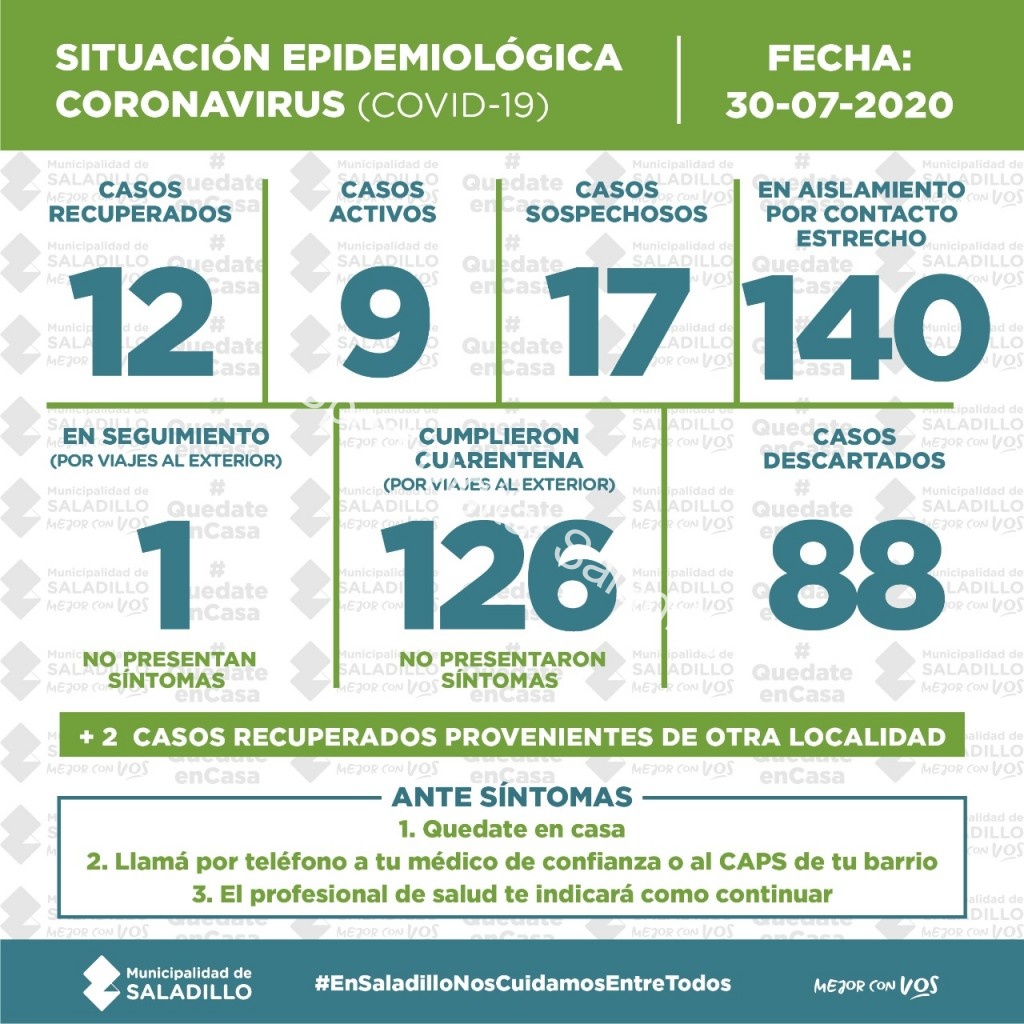 SITUACIÓN EPIDEMIOLÓGICA EN SALADILLO | 30/7/2020