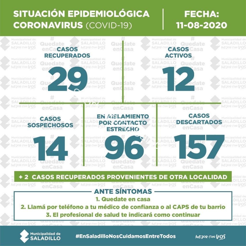 SITUACIÓN EPIDEMIOLÓGICA EN SALADILLO | 11/8/2020