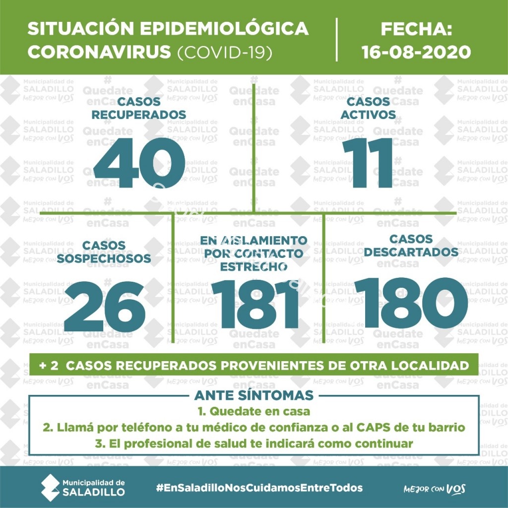 SITUACIÓN EPIDEMIOLÓGICA EN SALADILLO | 16/8/2020
