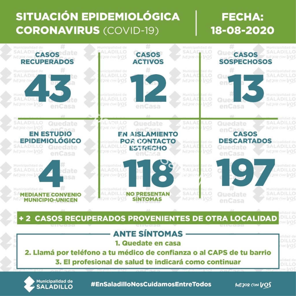 SITUACIÓN EPIDEMIOLÓGICA EN SALADILLO | 18/8/2020