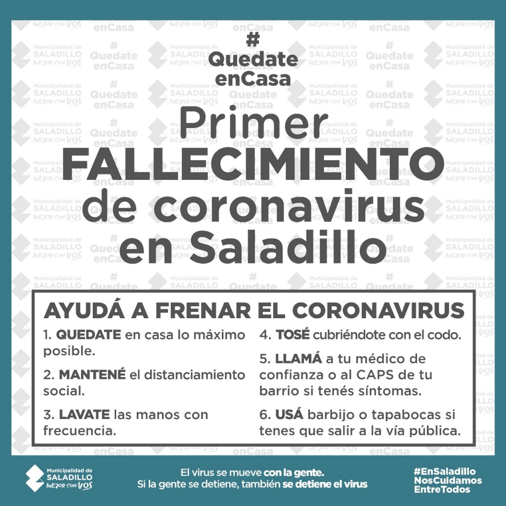 PRIMER FALLECIMIENTO POR CORONAVIRUS EN SALADILLO