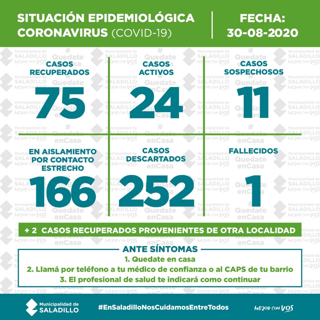 SITUACIÓN EPIDEMIOLÓGICA EN SALADILLO | 30/8/2020