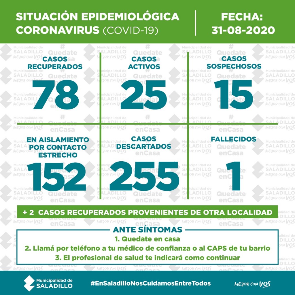 SITUACIÓN EPIDEMIOLÓGICA EN SALADILLO | 31/8/2020