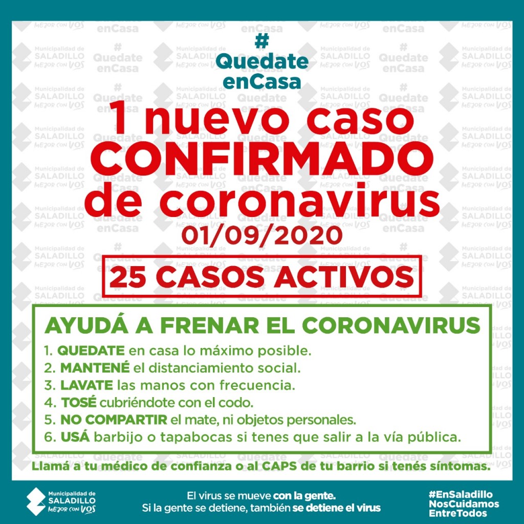 SITUACIÓN EPIDEMIOLÓGICA EN SALADILLO | 01/9/2020