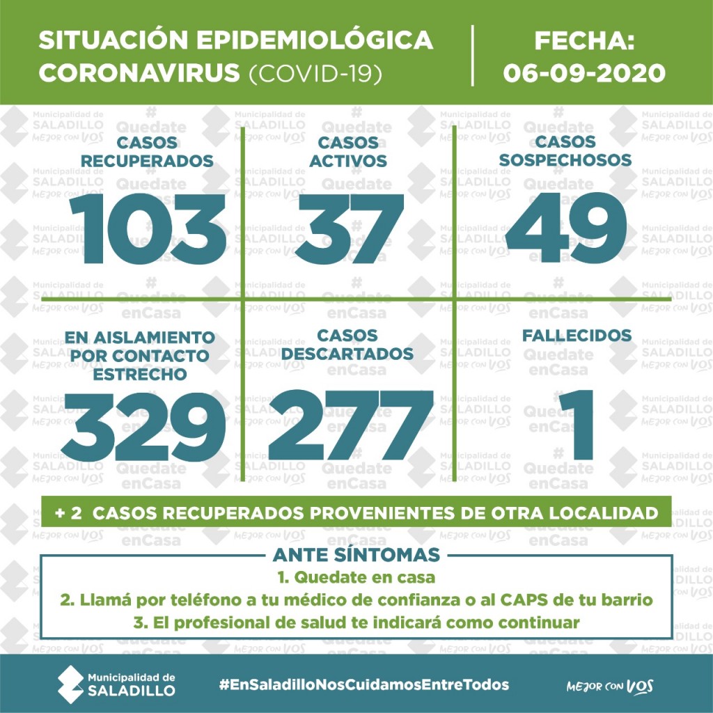 SITUACIÓN EPIDEMIOLÓGICA EN SALADILLO | 06/9/2020