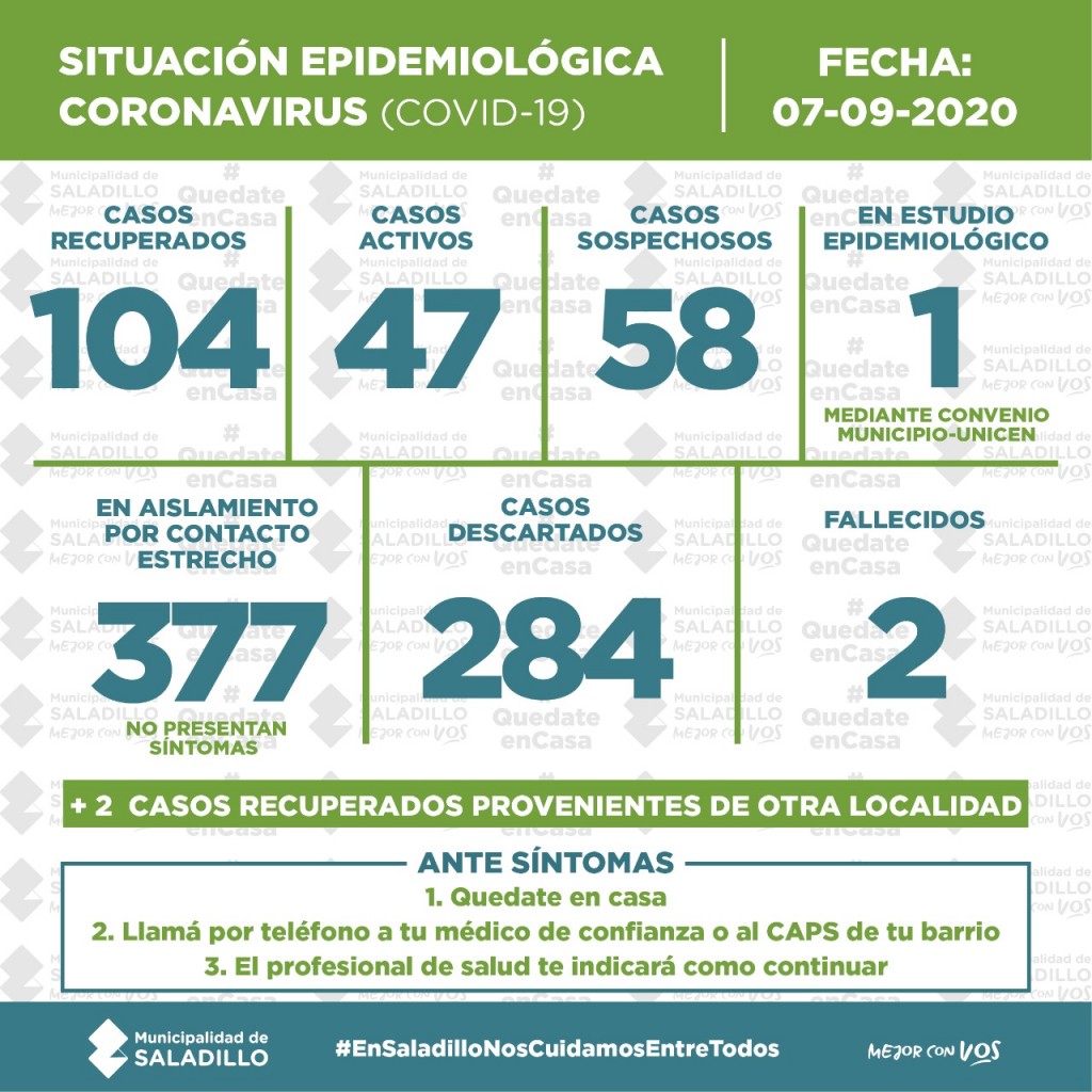 SITUACIÓN EPIDEMIOLÓGICA EN SALADILLO | 07/9/2020