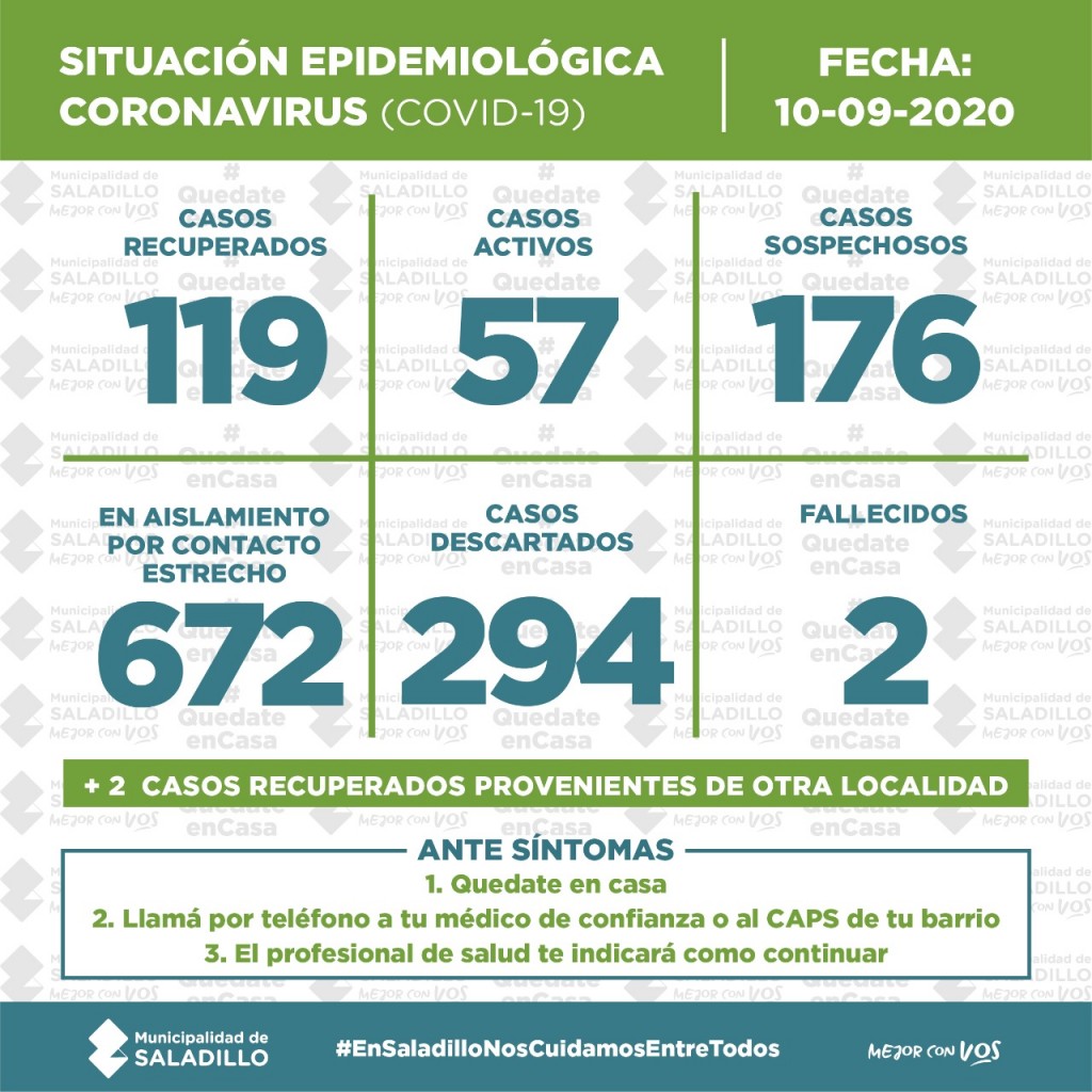 SITUACIÓN EPIDEMIOLÓGICA EN SALADILLO | 10/9/2020