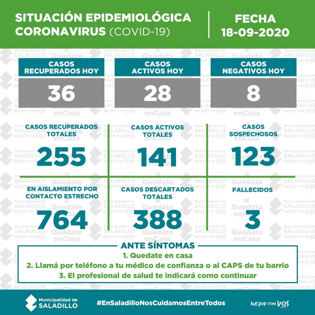 SITUACIÓN EPIDEMIOLÓGICA EN SALADILLO, ARGENTINA Y EL MUNDO al 18/09/2020