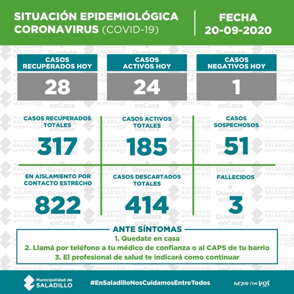 SITUACIÓN EPIDEMIOLÓGICA EN SALADILLO | 20/9/2020