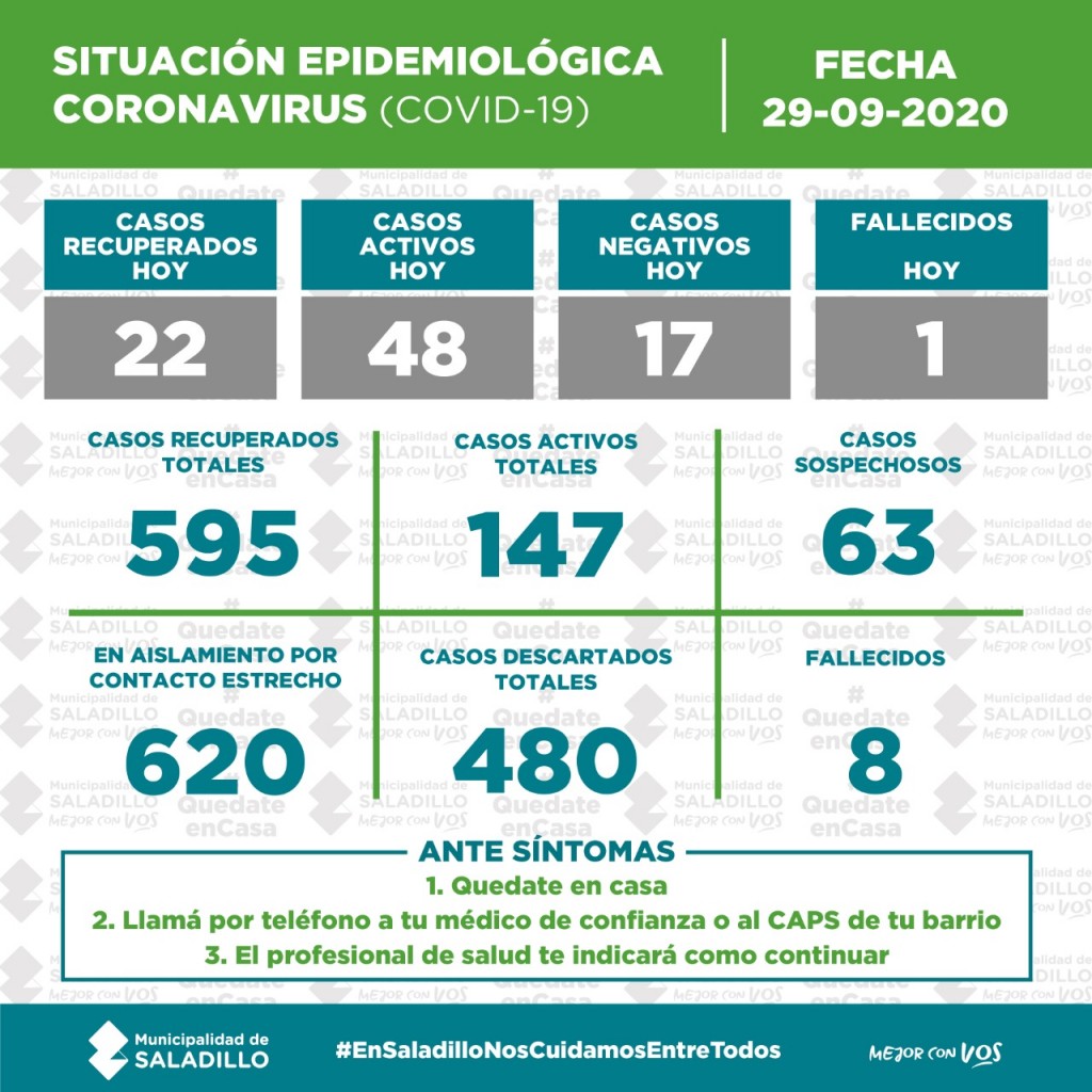 SITUACIÓN EPIDEMIOLÓGICA EN SALADILLO | 29/9/2020