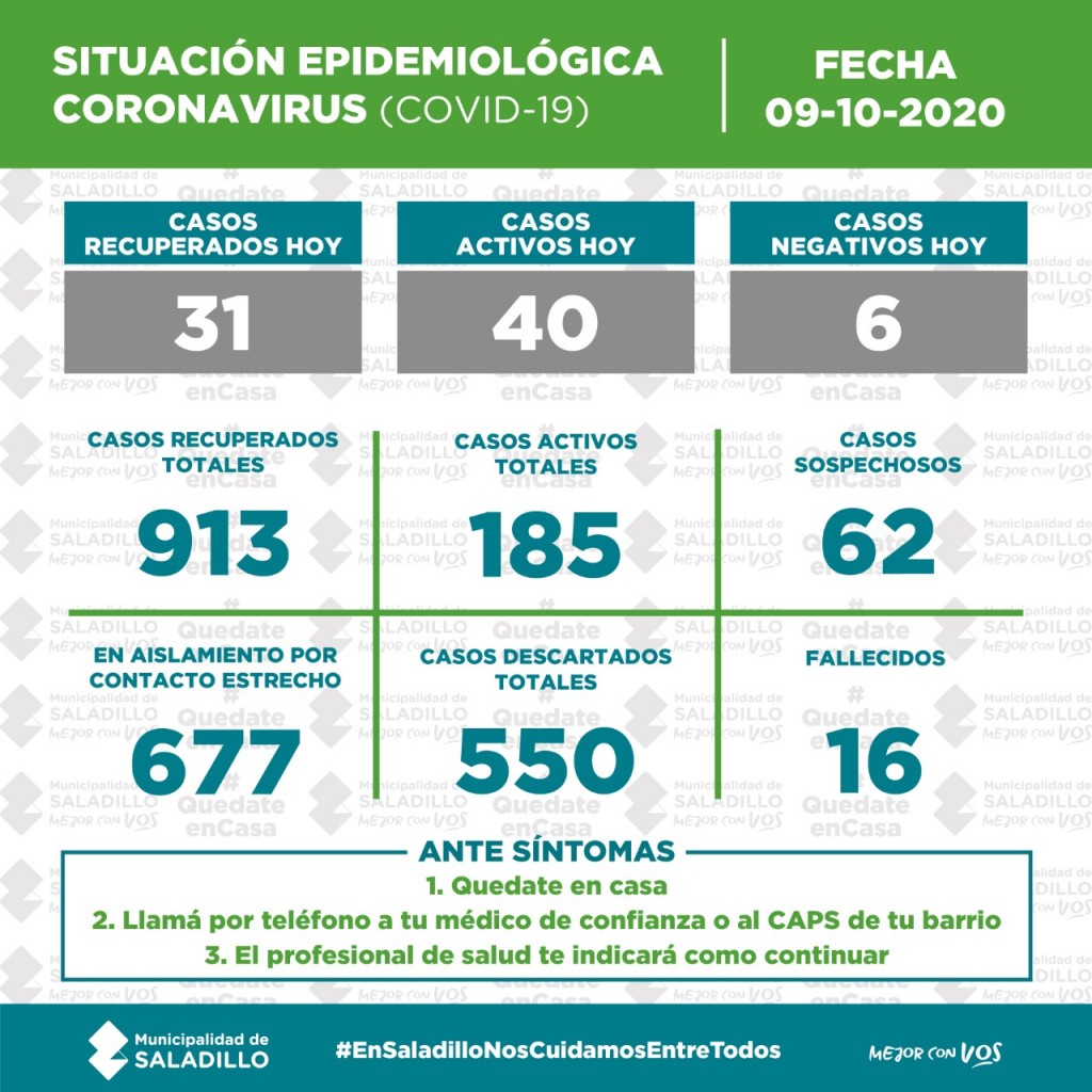 SITUACIÓN EPIDEMIOLÓGICA EN SALADILLO | 09/10/2020
