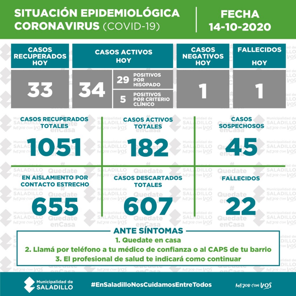 SITUACIÓN EPIDEMIOLÓGICA EN SALADILLO AL 14/10/2020