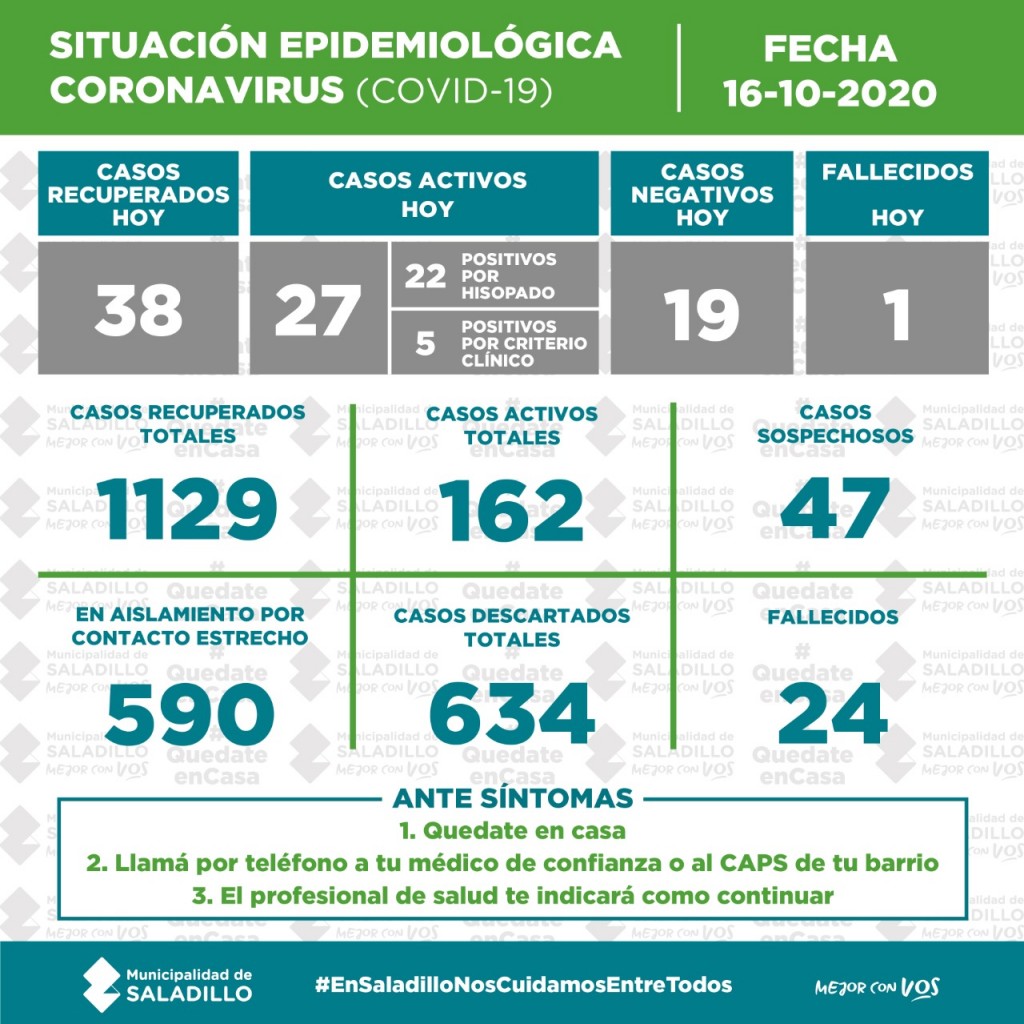 Situación epidemiológica en el Partido de SALADILLO al 16/10/2020