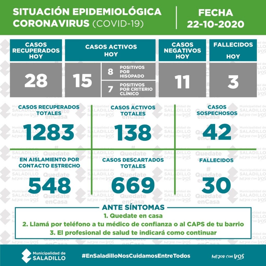 Situación epidemiológica en el Partido de SALADILLO al 22 de octubre