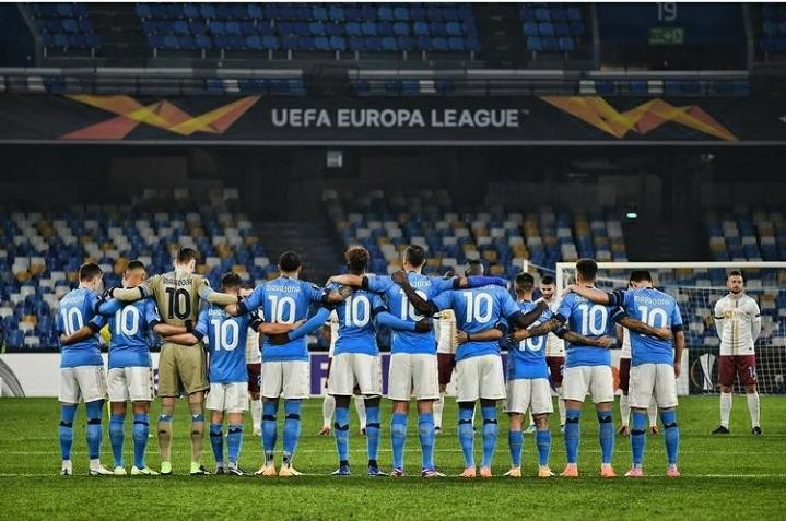 Todos los integrantes del Nápoles, incluido el técnico Gennaro Gattuso, llevaron las elásticas número 10 y respetaron junto al Rijeka, en el centro del campo, un sentido minuto de silencio, al tiempo que las pantallas del estadio mostraban una imagen del astro argentino.