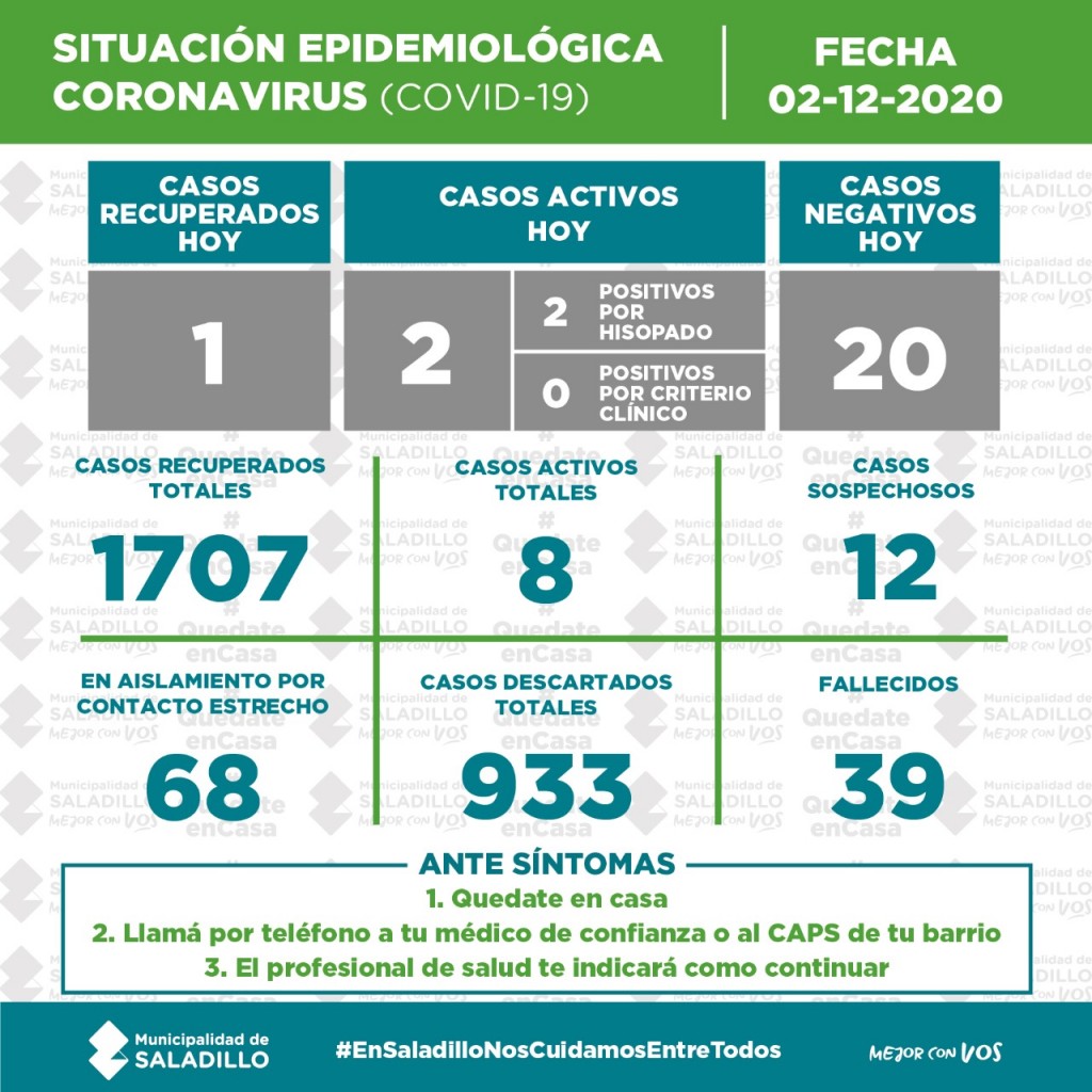 SITUACIÓN EPIDEMIOLÓGICA EN SALADILLO AL 02/12/2020