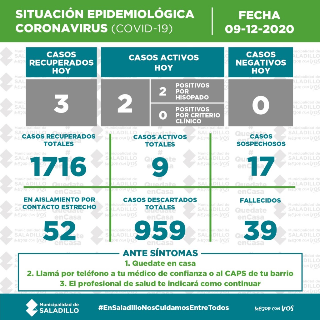 SITUACIÓN EPIDEMIOLÓGICA EN SALADILLO AL 09/12/2020
