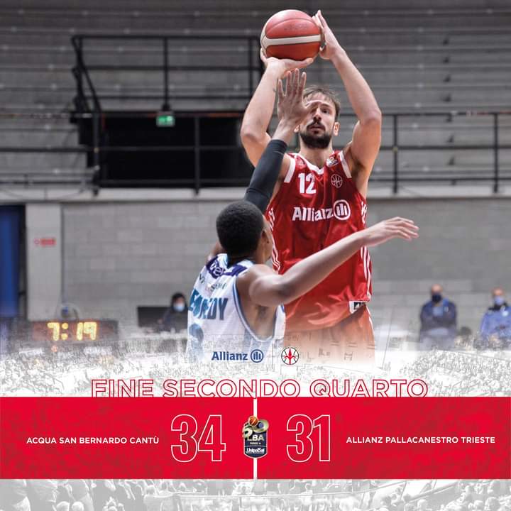 El segundo partido en tres días del Allianz Pallacanestro Trieste acaba con otra derrota: tras el enfrentamiento con Virtus Bologna, el equipo del saladillense Marcos Delía cayó ante el Acqua San Bernardo Cantú de Cesare Pancotto. En el PalaBancoDesio, el Cantú ganó por 73 a 67. Si bien el Triste demuestra una mayor condición y un deseo innato de luchar, no logran hacerse con la victoria ante un equipo que sin duda se ha recuperado mejor en términos de enfermería y dolencias, en comparación con el equipo rojo y blanco.