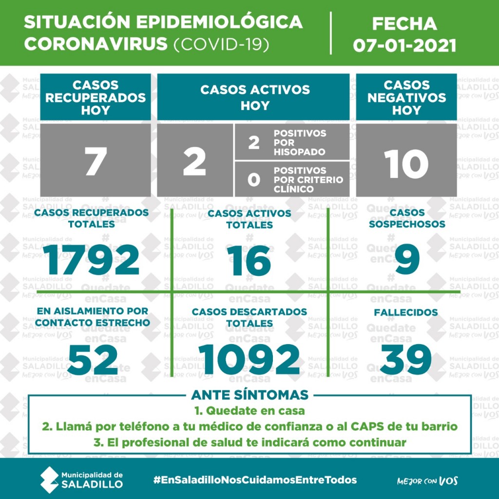 SITUACIÓN EPIDEMIOLÓGICA EN SALADILLO AL 07/01/2021