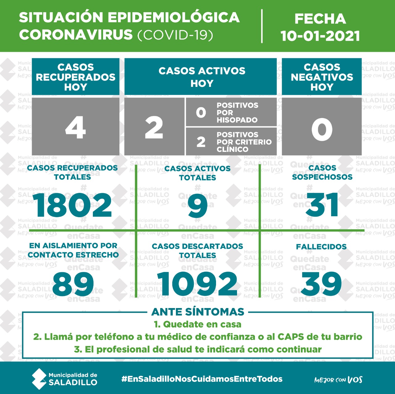 SITUACIÓN EPIDEMIOLÓGICA EN SALADILLO al 10/01/2021
