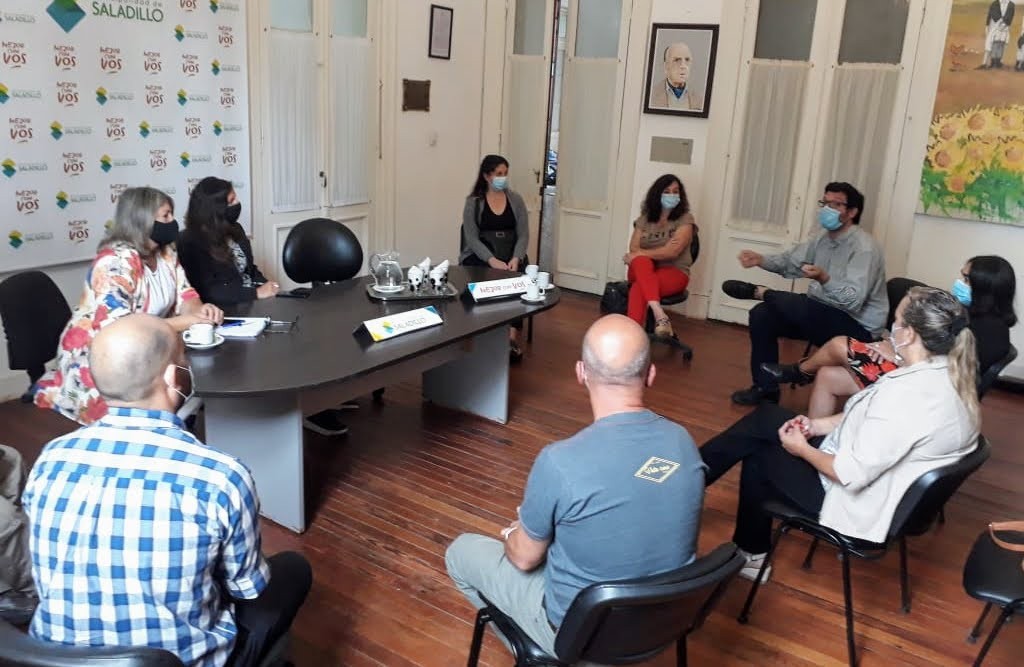 En el día de la fecha, en el salón Sesquicentenario de la Municipalidad de Saladillo, tuvo lugar una reunión entre Autoridades Municipales del área de la Secretaría de Gobierno, Subsecretarías de Salud y Seguridad, Autoridades de la Región Sanitaria X, y de las reparticiones IOMA y PAMI, con la finalidad de articular distintas acciones en pos de la vacunación contra el COVID-19 que tendrá lugar en nuestra ciudad, durante las próximas semanas. La misma se llevará a cabo en las instalaciones de la Escuela de Educación TécnicaN°1.