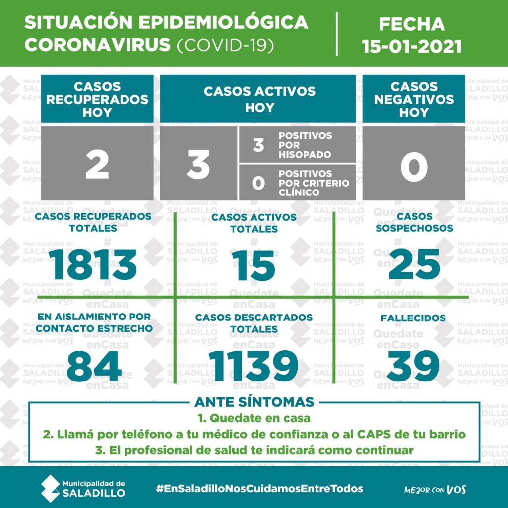 SITUACIÓN EPIDEMIOLÓGICA EN SALADILLO AL 15/01/2021
