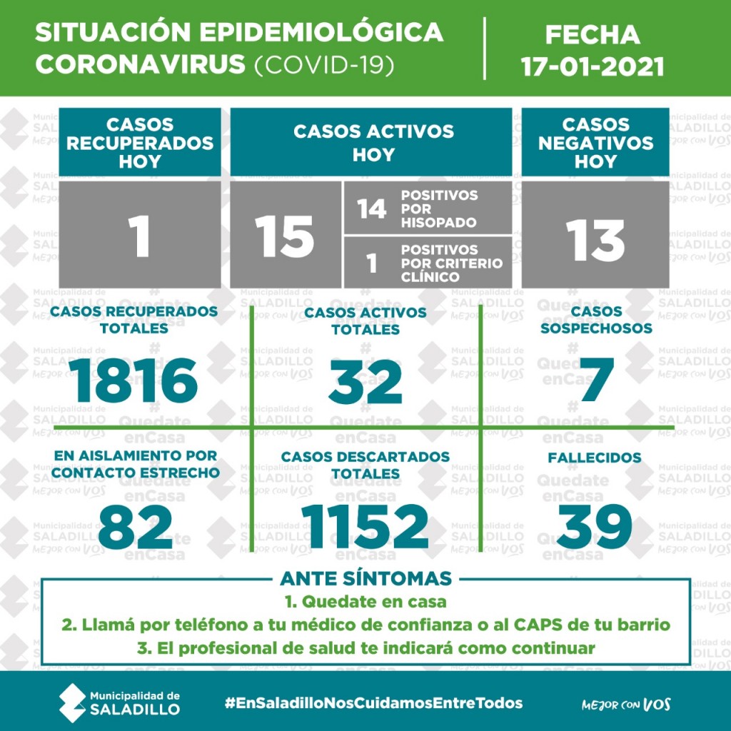 SITUACIÓN EPIDEMIOLÓGICA EN SALADILLO AL 17/01/2021